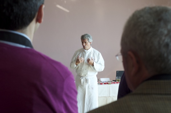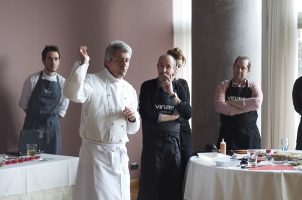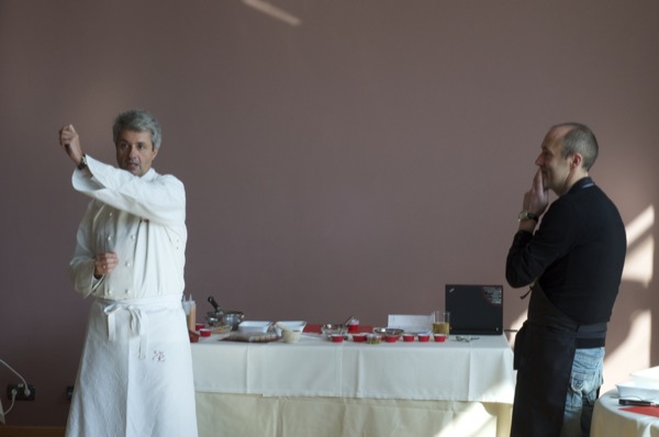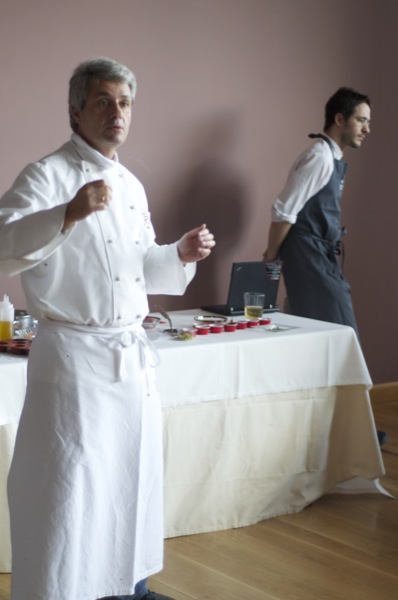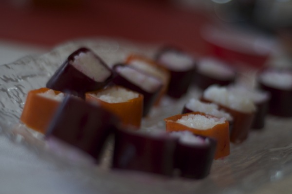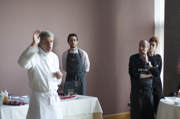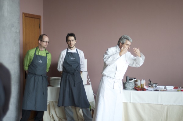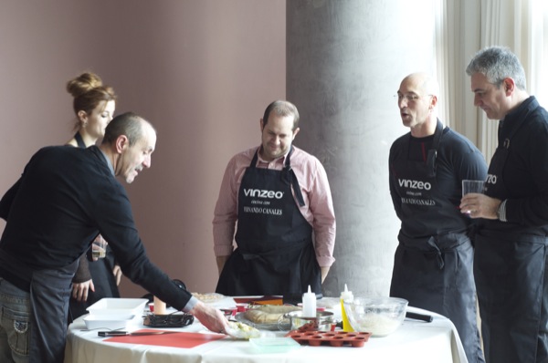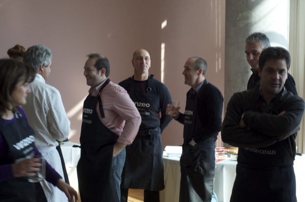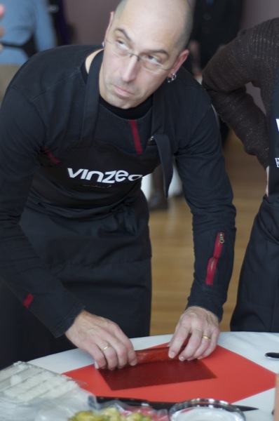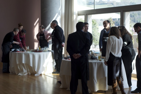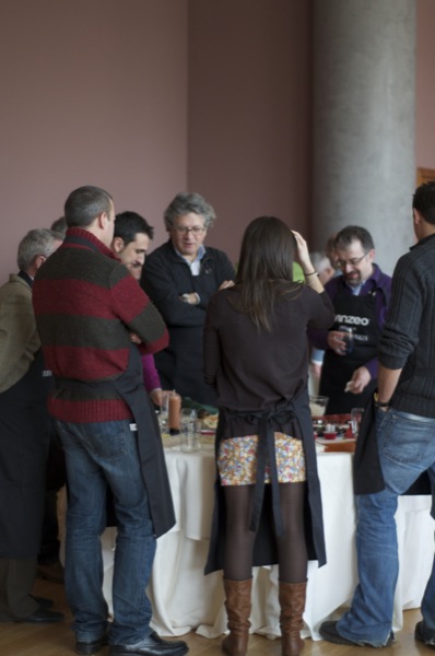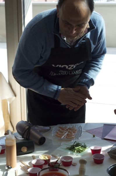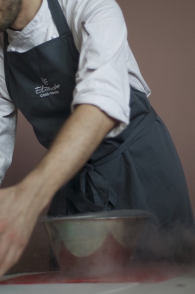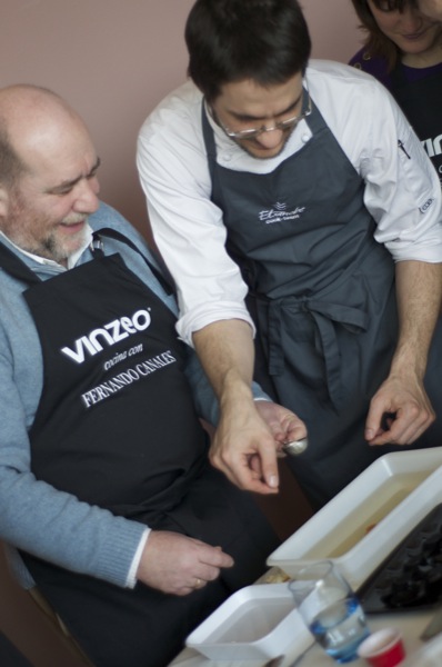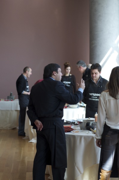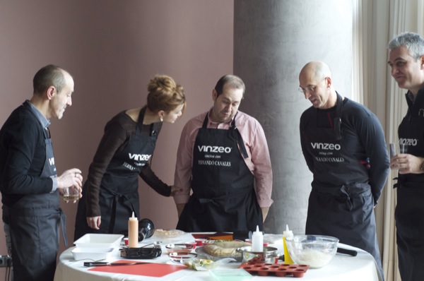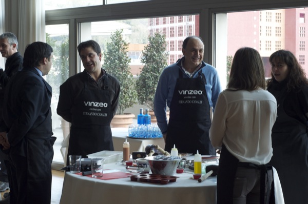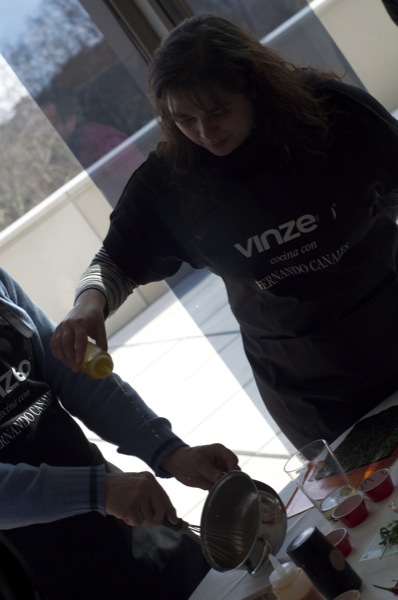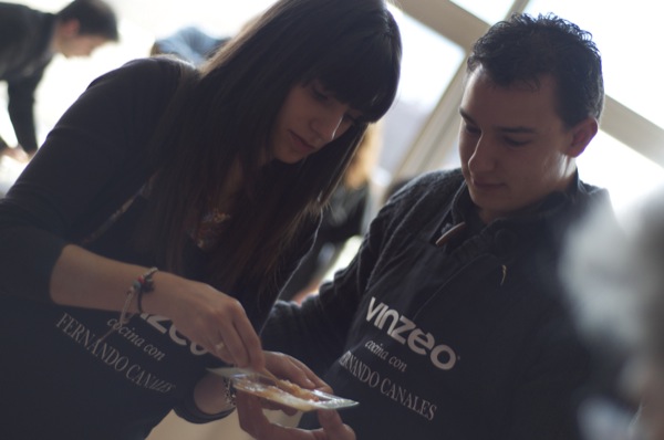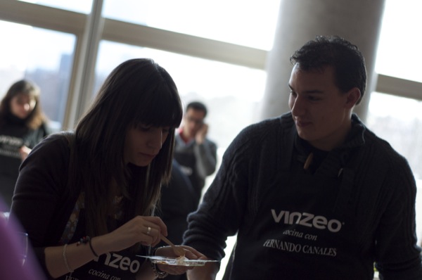 La semana pasada ofrecimos un ‘Show-cooking’ (una sesión de cocina en vivo y directo, donde los comensales asisten a la elaboración de los platos antes de probarlos) para la empresa tecnológica Vinzeo. Inspirándonos en las marcas con las que trabaja, creamos una serie de platos que, además de sabrosos, eran de lo más tecnológicos. Entre otras propuestas, inspirada en HP, presentamos una cata de Hierbas Picantes, aderezadas con pimienta blanca. Con la ayuda de una impresora EPSON, imprimimos el sabor del campo en unos folios de verduras con los que preparamos sushi regado con pilpil de hongos. Cocinamos sin SONYdo unas ricas alcachofas y cebolletas, en el mircroondas más silencioso del mundo y siguiendo la conciencia medioambiental de TOSHIBA, cocinamos con nitrógeno líquido, un gas inerte esencial para el medio ambiente.