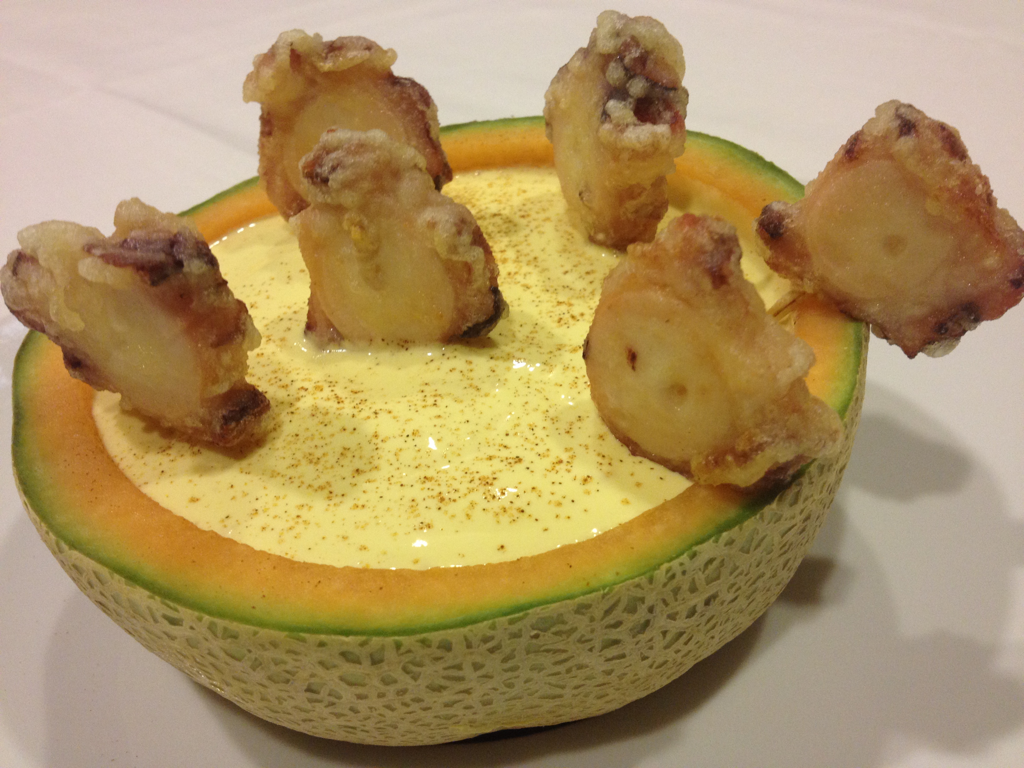 Hoy vamos a preparar un delicioso plato de pulpo con sopa de melón y canela. Esta receta tiene un contraste de sabores irresistible, que gustará a todos los miembros de la familia.